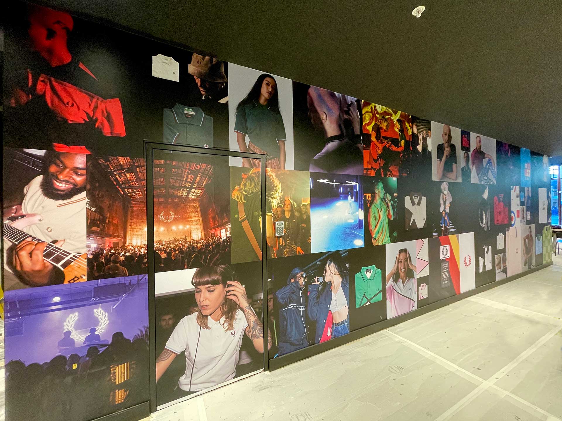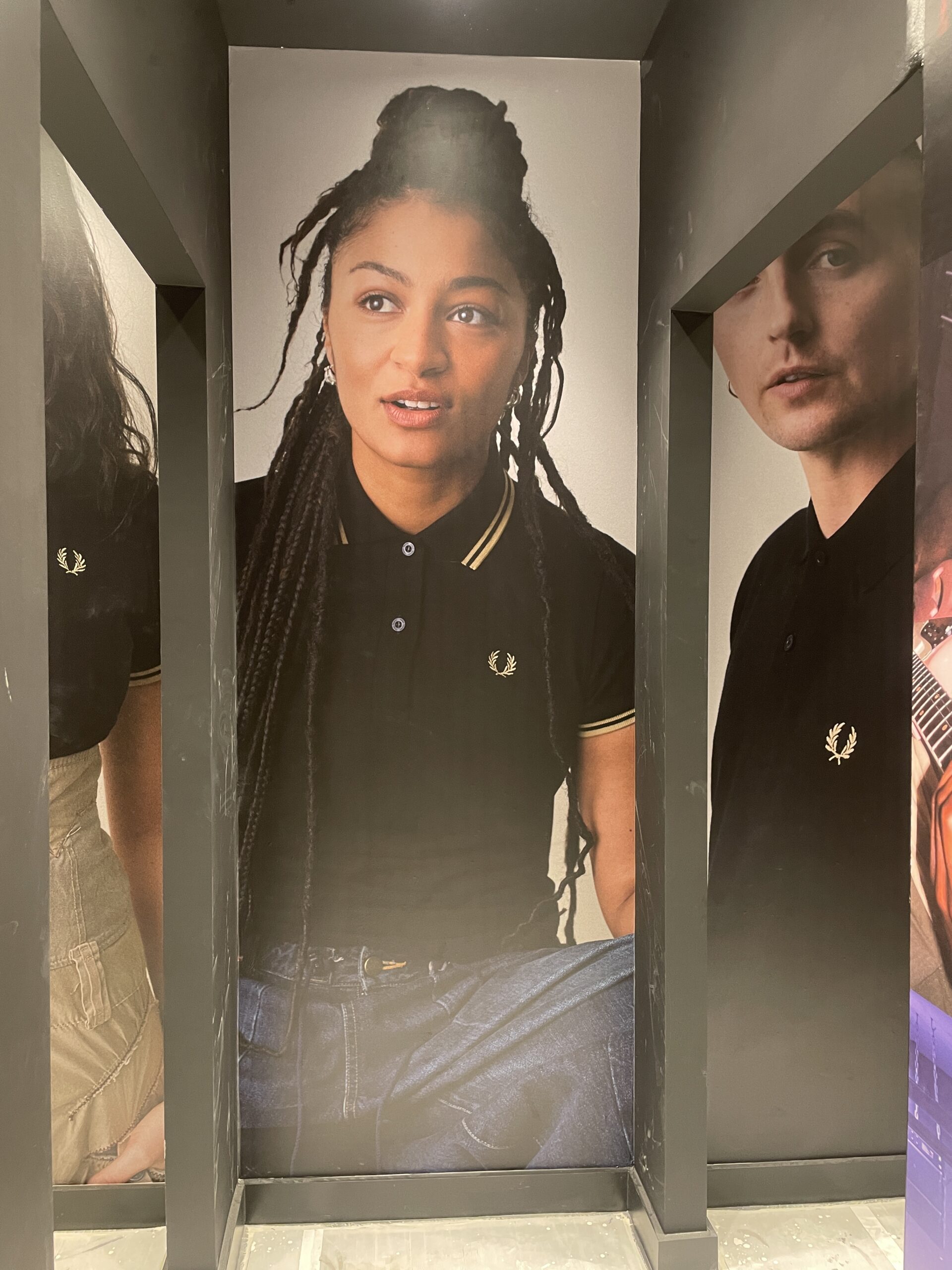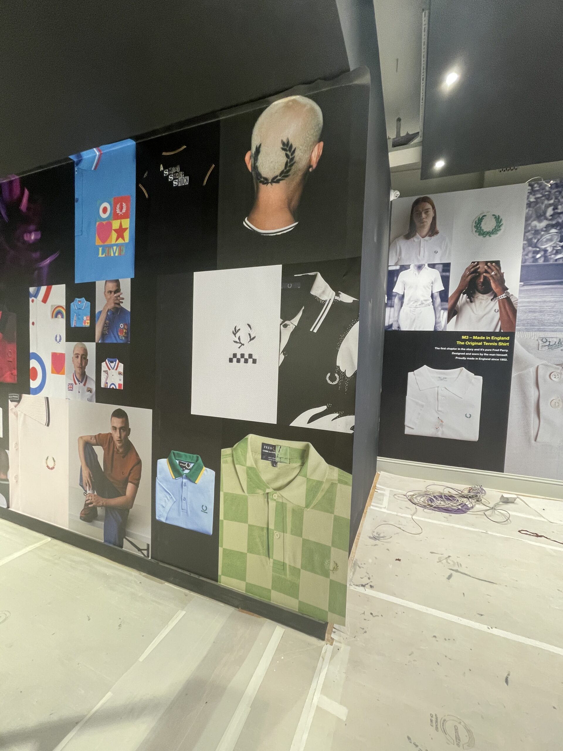 Custom-made fascia signage featuring a bold, raised Fred Perry logo